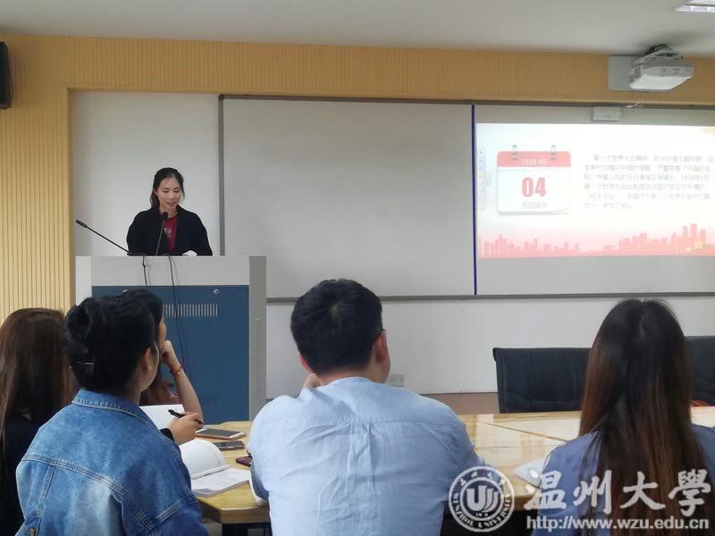 会议开始,周奇老师指出,此次《教院青年说》的主题内容将紧紧围绕习近平总书记在“纪念五四运动一百周年”大会上的讲话展开。习近平总书记在纪念大会上强调,青年是整个社会力量中最积极、最有生气的力量,国家的希望在青年,民族的未来在青年,对新时代青年提出要树立远大理想,要热爱伟大祖国,要担当时代责任,要勇于砥砺奋斗,要练就过硬本领,要锤炼品德修为的六点要求。习近平总书记对如何培育新时代青年所做的论述值得我们研究生深入学习。 随后,研究生党支部宣传委员王圆茗向大家介绍了五四运动的缘起与启示,带领党员同志再一次回顾了具有历史意义的五四运动,并了解了五四运动背后的深刻意义与时代价值,它是以全民族的力量高举起爱国主义的伟大旗帜,以全民族的行动激发了追求真理、追求进步的伟大觉醒,以全民族的搏击培育了永久奋斗的伟大传统。