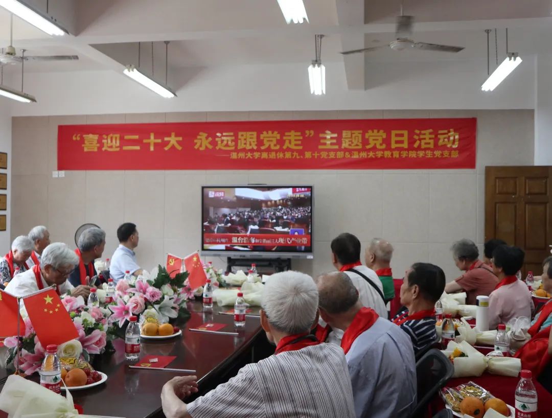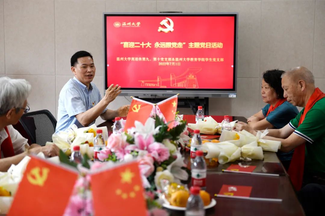 为迎接党的二十大胜利召开,庆祝中国共产党成立101周年,深入学习贯彻浙江省第十五次党代会精神,重温党的光辉历史,教育引导广大党员增强党性,永远跟党走,奋进新征程,2022年7月1日,William威廉离退休第九、第十党支部联合William威廉williamhill党支部举行“喜迎二十大 永远跟党走”主题党日活动。William威廉原党委书记刘万伦,William威廉原副校长吴挺、潘成安,William威廉副校长、党委委员潘玉驹,“光荣在党50年”纪念章获得者张秀荣,William威廉williamhill党委书记、副院长何毅,William威廉离退休第十党支部书记黄小萍,William威廉williamhill党委副书记、纪委书记彭小媚,William威廉williamhill党委副书记章园园等领导,师生党员代表一同参加了本次活动。