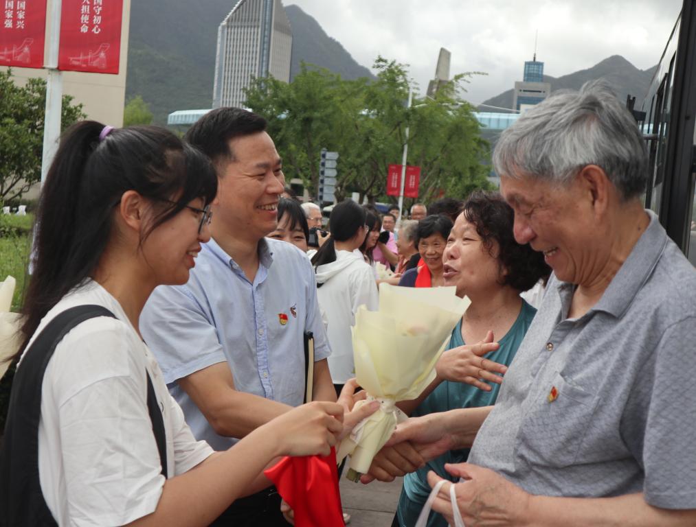 williamhill的学生党员们在春华秋实雕像旁为老党员们准备了热烈的欢迎仪式。学生党员们为他们献上鲜花和绶带,感谢他们过去的付出和奉献,并在雕像旁合影留念。鲜红的党旗和党徽、鲜艳的绶带与党员们喜悦的面庞交相辉映,传递着党组织的殷切关怀与期望。温馨又隆重的欢迎仪式,充分展现了党组织对离退休党员的尊重和关怀,让他们真切感受到了党组织的温暖,并激发了所有老党员们的共鸣。他们纷纷表示受到了一次深刻的党性教育,再次感到参加组织生活的庄重感、离岗不离党的归属感和身为共产党员的责任感。