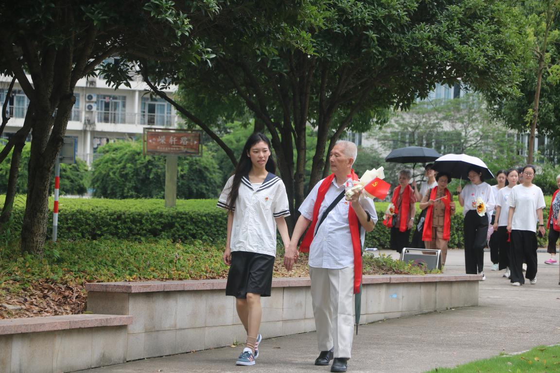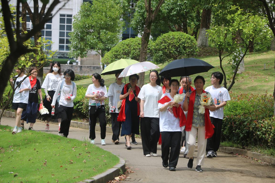 老党员们在学生党员的陪伴下参观了美丽校园,从williamhill到明心湖,从明心湖到国旗广场,校园熟悉而美丽的景色唤起了老党员们心中的回忆。
