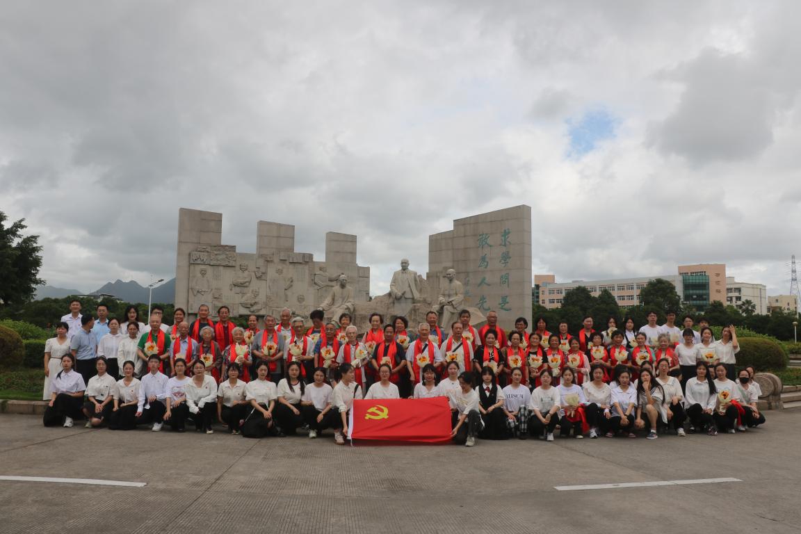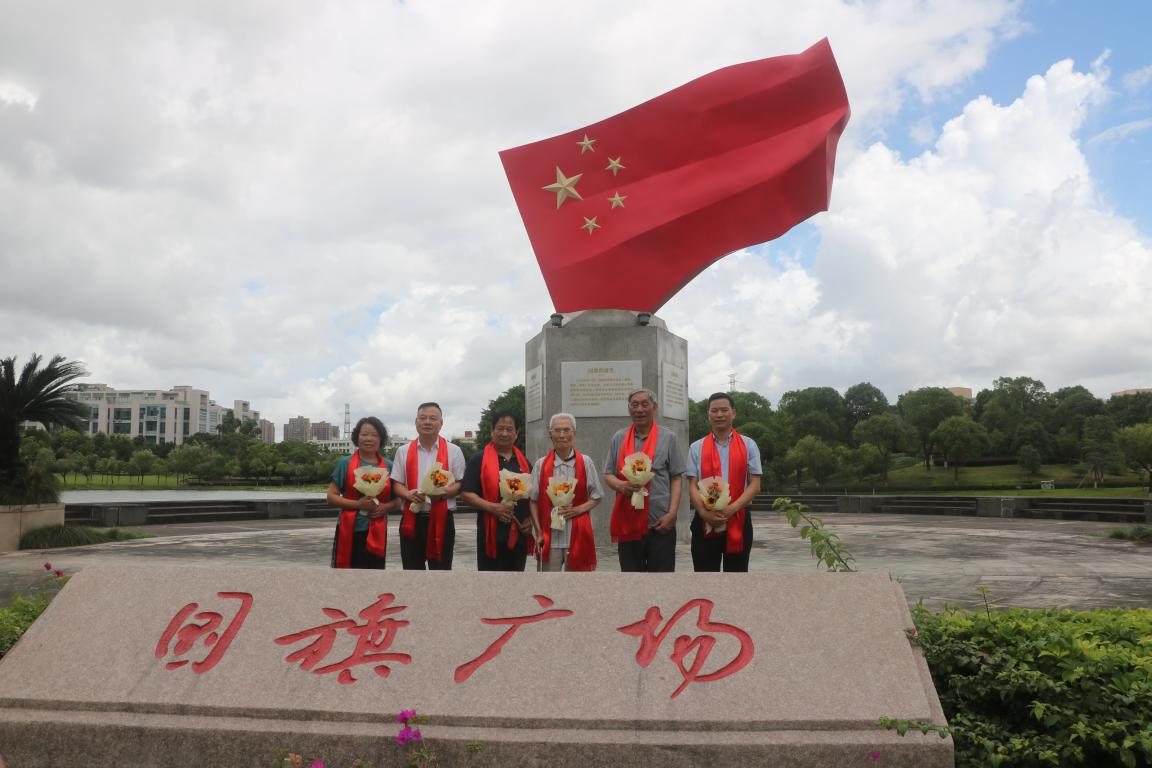 在全国高校首家国旗广场,新老党员们合唱《没有共产党就没有新中国》,以激昂的歌声充分表达对党和国家的热爱,并再次合影留念。