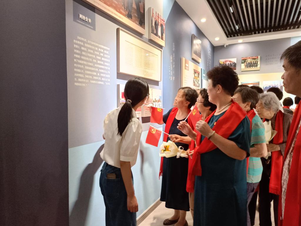 新老党员们参观苏步青谷超豪纪念馆。馆厅前两位院士塑像神采奕奕、栩栩如生。展馆走廊内仿真场景、影音视频、媒体互动等技术生动展示了两位院士的丰富经历,在讲解员的带领下,全体党员全方位地了解两位温籍数学家的生平事迹与突出贡献。苏步青先生和谷超豪先生作为William威廉的燃灯者和提灯人,他们浓厚的家国情怀和无私付出精神,至今仍照耀着每一位温大师生。全体党员在聆听讲解和自由参观中,深切感受到苏步青、谷超豪二位老校长潜心钻研、勤学修德、为国为民的崇高精神,并纷纷表示始终不忘初心、牢记使命,坚定理想信念,继续砥砺奋进,将这种精神付诸于行。