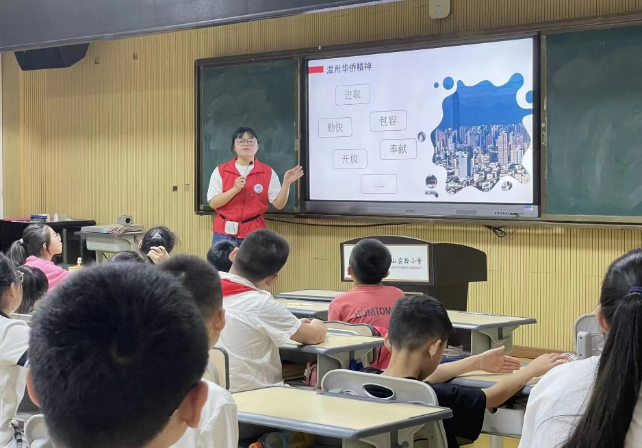 我身为云中侨志愿服务队的队长,在暑期期间和队员们为侨乡留守儿童开展特色课堂及课后作业辅导,助力侨乡留守儿童的快乐成长。在7月17日的活动课中,我向同学们讲解了温州的发展史,部分学生家长也通过录制视频、现场连线等方式讲述了他们的创业故事,同学们联系自己家长的经历,讲述了自己家庭“走出去”的故事。
