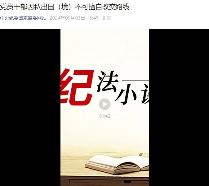廉政警示教育(四十一):党纪学习教育丨《党员干部因私出国(境)不可擅自改变路线》