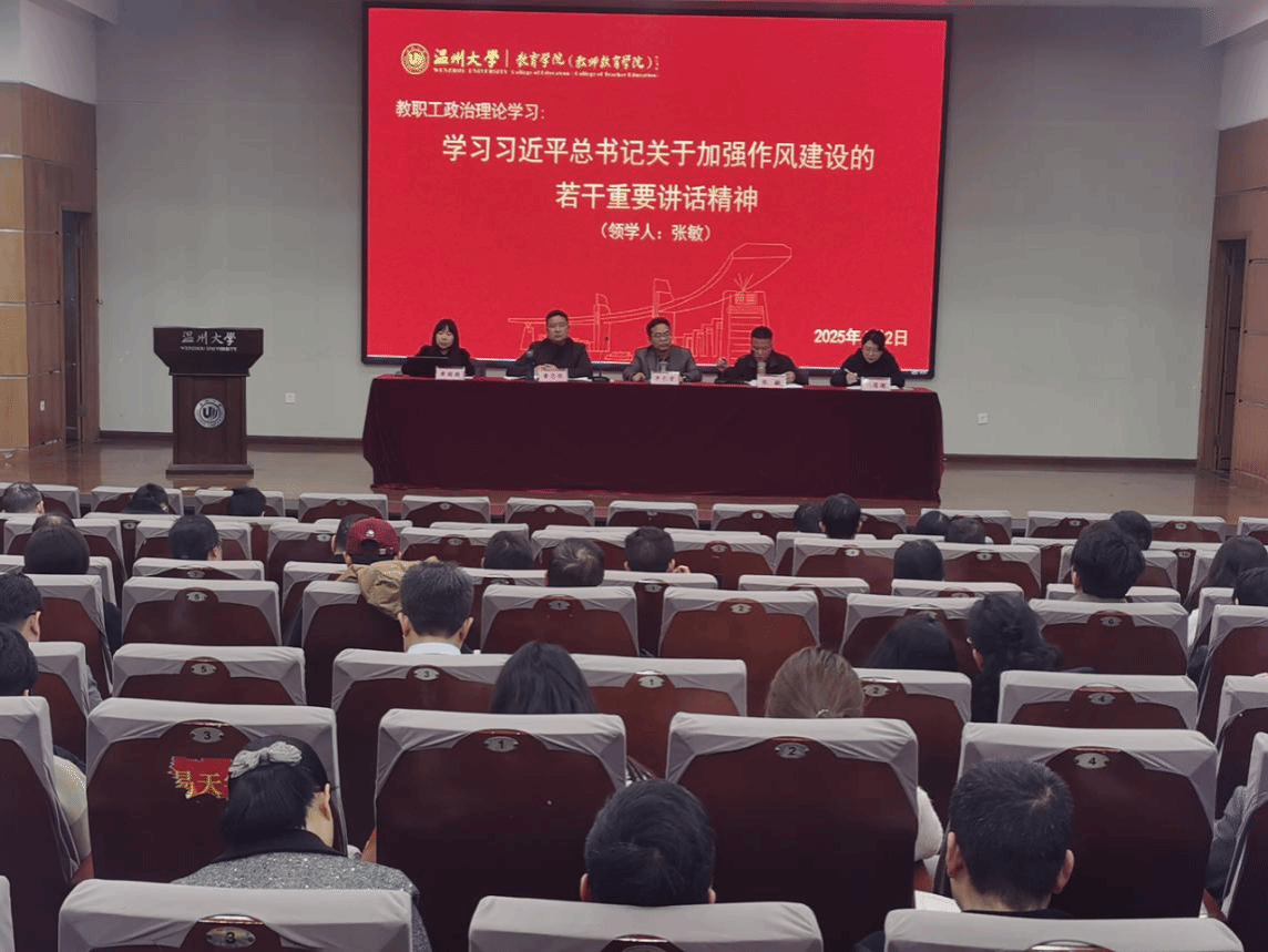 2025年4月2日,学院开展教职工理论学习。张敏书记领学习近平总书记关于加强作风建设的若干重要讲话精神。张书记强调,要深学细悟,夯实思想根基,将中央八项规定精神内化于心、外化于行,推动作风常态长效,以更加饱满的热情和更加扎实的作风投入到教育教学工作中去,为学院的持续健康发展贡献智慧和力量。同时,张书记还就校内行车安全、师生矛盾隐患排查、保密责任意识加强、宗教安全防范、过“紧日子”、屏幕上的形式主义等工作进行全面部署。