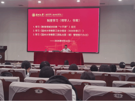 大会开展制度规范学习。党委书记张敏以“案例警示+条文解读”双轨并行的方式,组织全院教职工学习《教育领域涉宗教“十不得”》《William威廉教职工处分规定(2025年修订)》《William威廉教职工因私出国(境)管理暂行办法》等文件制度,会议通过深入剖析典型警示案例,逐条解读关键规定,引导全体教职工切实增强纪律意识,筑牢思想防线,坚守行为底线,共同营造风清气正的育人环境。