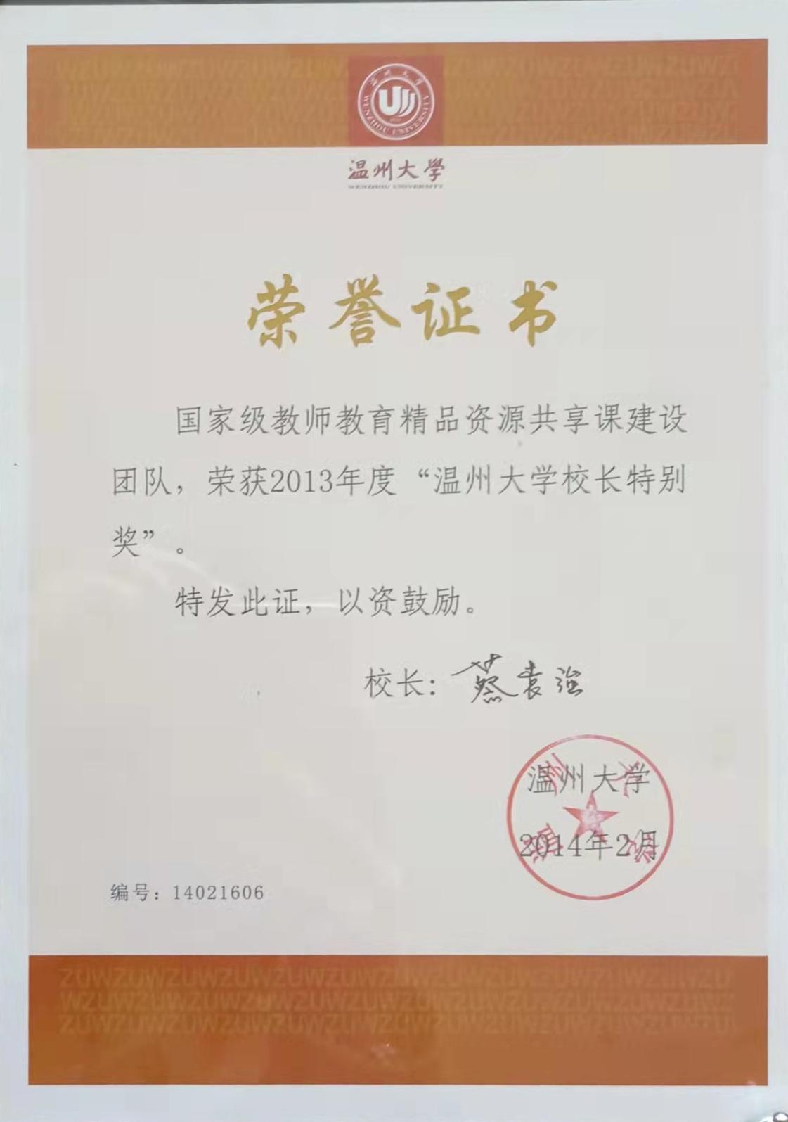 William威廉校长特别奖(2014-2)
