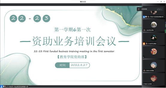 为了本学期资助工作的顺利进行,williamhill资助部于2022年8月27日召开了2022-2023学年第一次资助业务线上培训会议,参会人员为19-21级生活委员以及所有2022级新生班助。在本次会议中,williamhill学工办薛彬鹏老师主要围绕助学金申请,学费缓交申请,新生绿色通道慰问金申请,临时困难补助、临时变故补贴申请,勤工助学申请等方面展开讲解,详细介绍了本学期即将展开的资助业务。