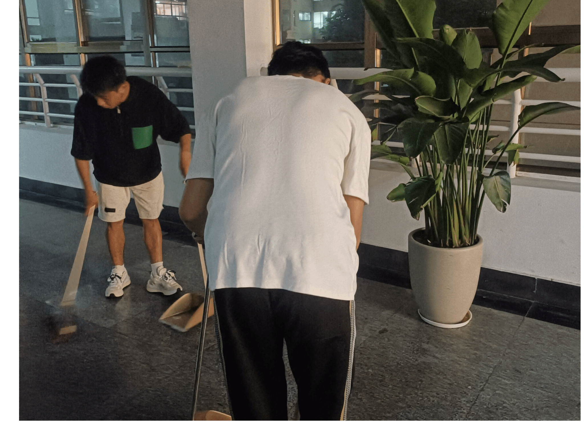 我院区域多、范围大,因此我们的劳动实践采用包干区负责制,由班级组织学生前往包干区进行清扫,每日一清扫,每周一大扫。从学院的各个琴房、微格教室、多功能教室,到大厅、楼道、报告厅,包给每个班级。班级学生分工明确,各司其职,劳动开展热火朝天,真正培养了同学们的主人翁意识。