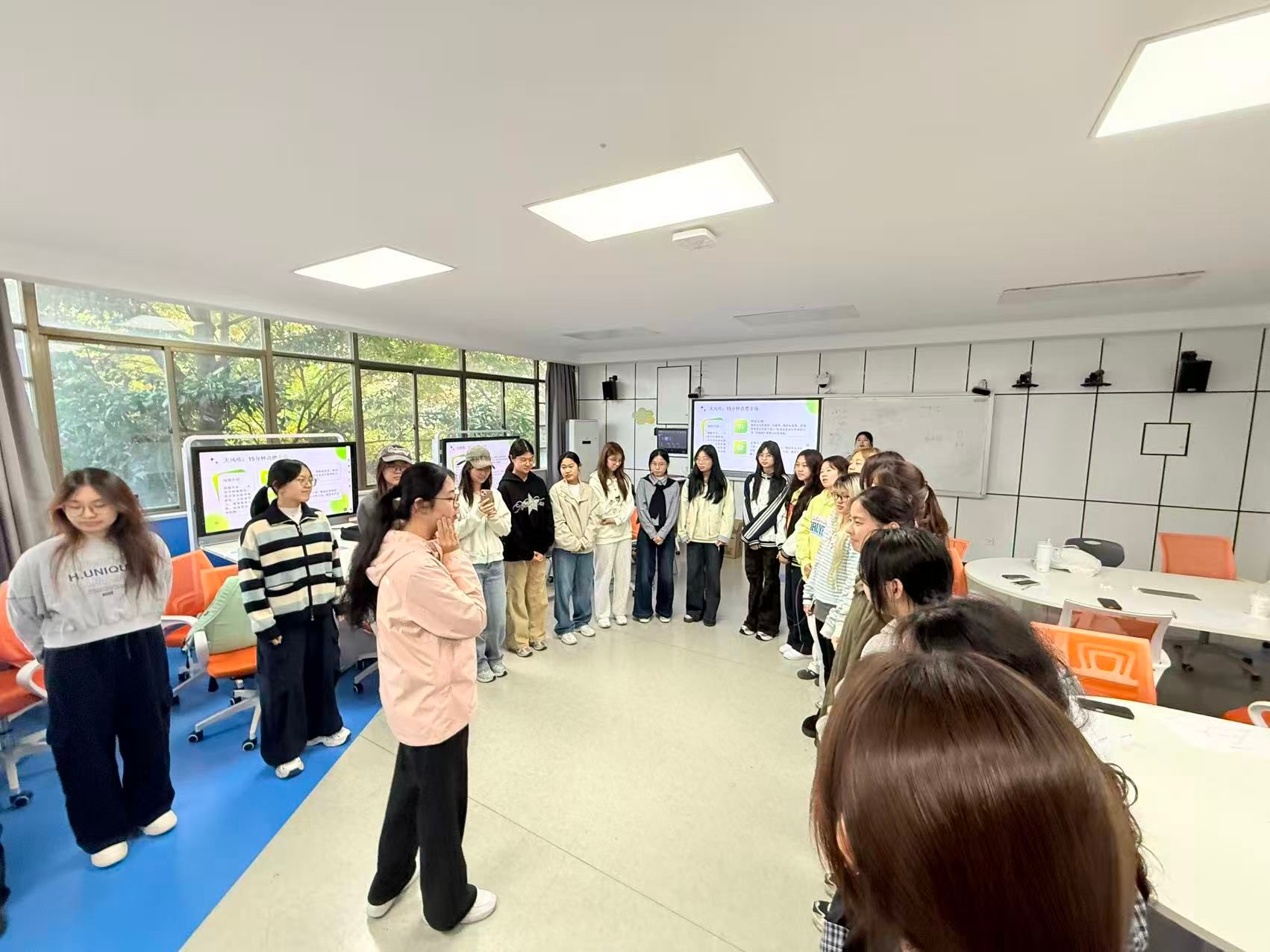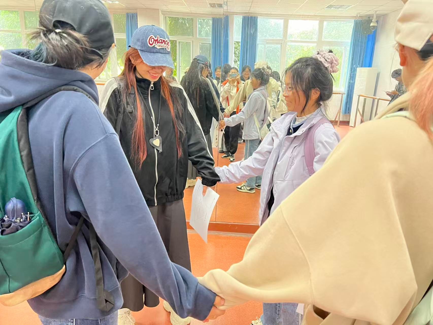 活动伊始,同学们手拉手围成"爱心圆圈",带领老师细致阐释了团体辅导对新生适应的重要意义,共同宣读并践行"尊重、倾听、包容"的心理团体契约,为活动筑牢信任基石。各班以经典热身游戏"大风吹"拉开序幕,随着"吹喜欢运动的同学""吹来自南方的同学"等指令响起,原本拘谨的学子们迅速移动、欢笑互动,腼腆的笑容逐渐舒展,陌生感在欢声笑语中悄然消散。游戏间隙穿插的即兴才艺表演,更让现场掌声不断,热烈氛围持续升温。在"心灵默契初体验""高山流水遇知音"等核心环节,学子们敞开心扉,从家乡习俗、兴趣爱好到成长故事、未来规划,真诚分享让彼此快速相知。短短十余分钟,教室里便多了许多相视一笑的默契,初步友谊在交流中生根发芽。"团队展示"环节更显创意迸发,各小组轮番呈现精心设计的队徽、自编自唱的队歌和诙谐搞怪的队形,夸张的肢体语言与巧妙的创意构思引得全场喝彩,团队凝聚力在协作中悄然凝聚。"心有千千结"活动中,学子们手牵手形成复杂绳结,在彼此提醒、默契配合中逐步解开,亲身体验"团结协作破难题"的力量。最后的"大学生活金三角"分享会上,大家真情流露,既有对专业学习的期待、对社团生活的向往,也坦诚倾诉初入校园的迷茫。老师适时引导,让学子们在共情中明晰"珍惜当下、携手成长"的真谛。