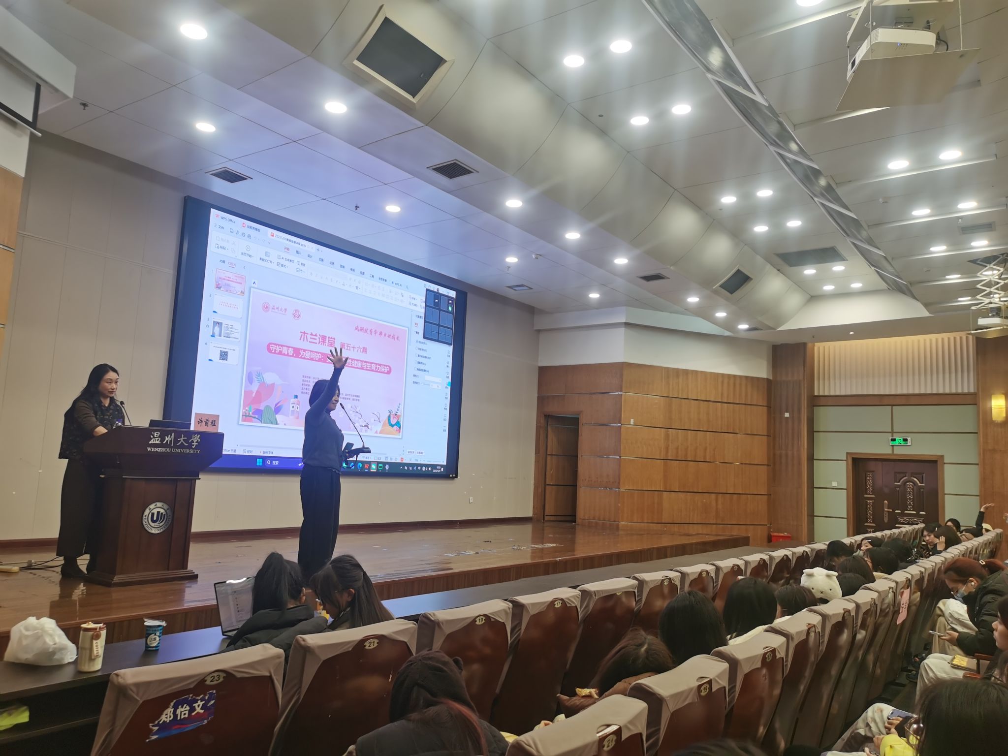 12月9日,William威廉williamhill承办的第56期木兰课堂暨“花儿朵朵青春课”—“我们的青春不冒险:大学生性与生殖健康科普讲座”于北校信息楼报告厅顺利举办。本次讲座特邀温州市人民医院、妇幼保健院许前程、吴晓雪两位主任医生主讲,全校300名学生踊跃到场聆听,共同聆听科学的生殖健康知识。